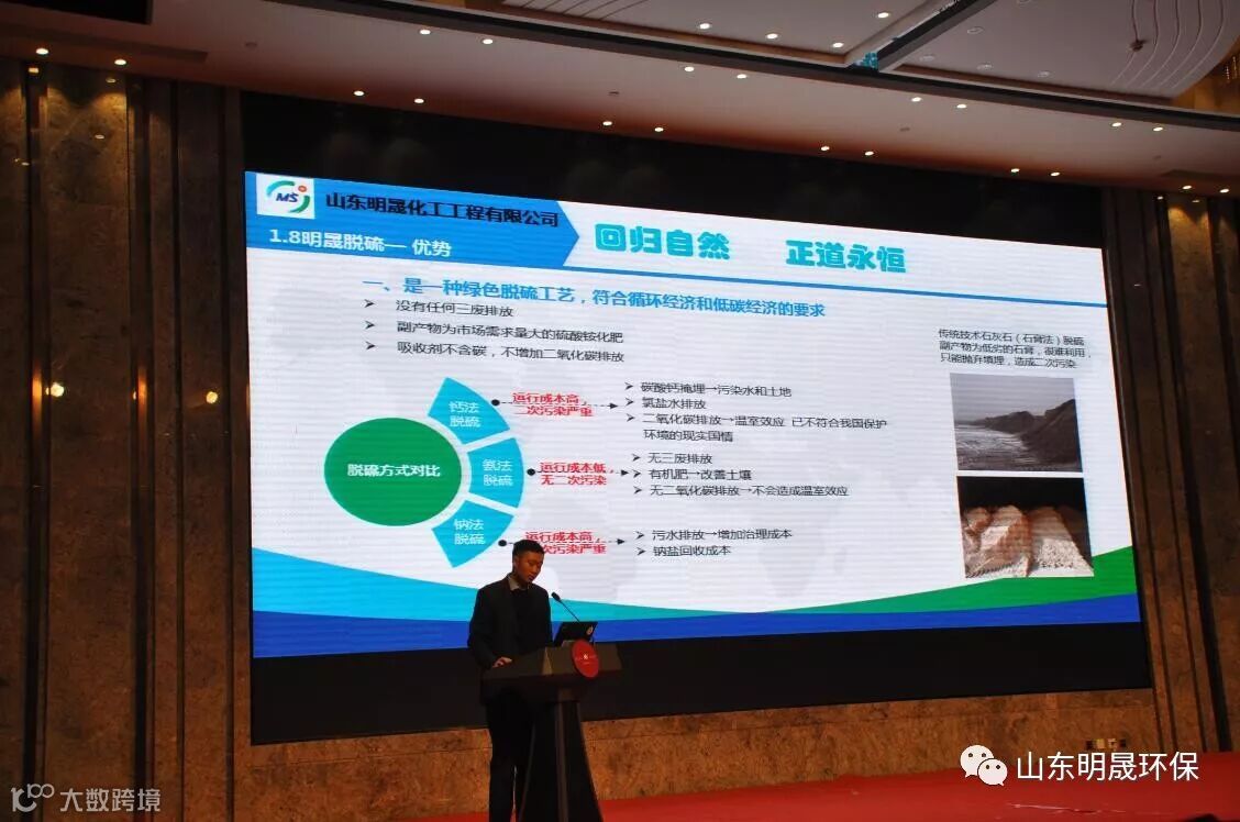 会议期间,明晟环保总经理张泽华先生向在座的科技厅领导、环保界人士、业主单位领导重点介绍了“梯级分离净化氨法脱硫除尘一体化技术”。