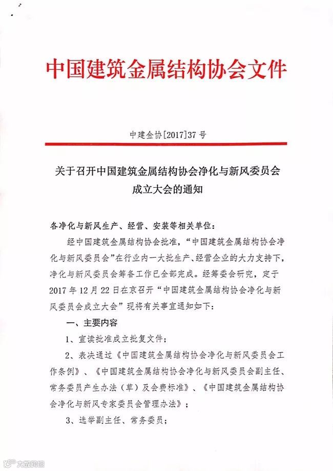 协会通知|关于召开中国建筑金属结构协会净化与新风委员会成立大会的通知