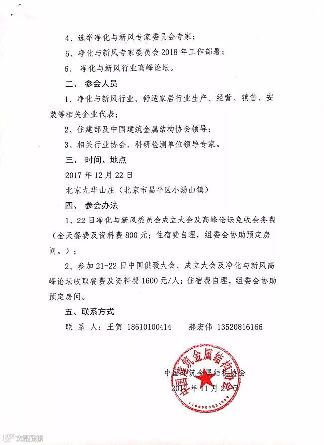 导读:经筹备会研究,12月22日在九华山庄召开“中国建筑金属结构协会净化与新风委员会成立大会“,现将有关事宜通知如下!