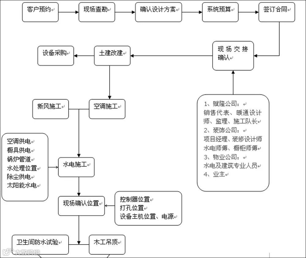 赋隆公司:销售代表、暖通设计师、监理、施工队长。