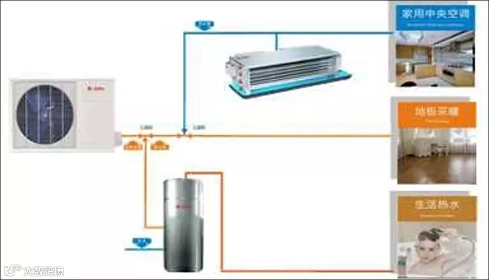 ②空气源热泵连接地暖系统用于冬季采暖,能效比高,无污染,安全可靠。