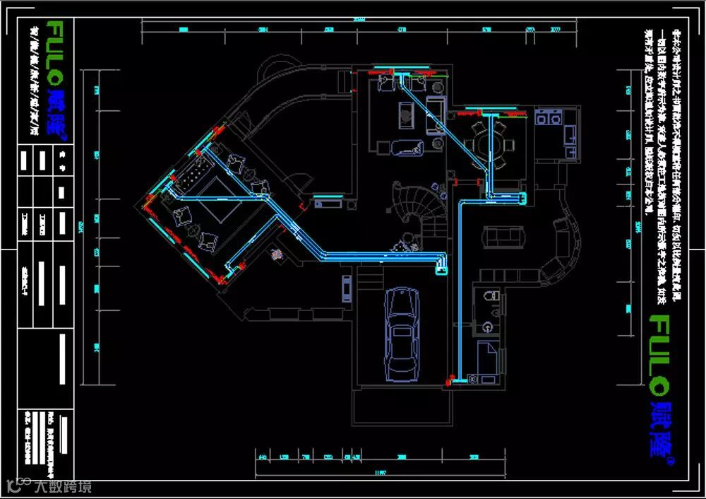 (地暖施工要注意区分阳面和阴面,阴面距离墙面1000mm内,管道要加密为150mm,阳面有大面积落地窗也要加密为150mm。地暖施工采用20mm的管道,正常保持间距为200mm。地暖与新风交叉时,模块可以按照新风地面管道布局合理铺设。)
