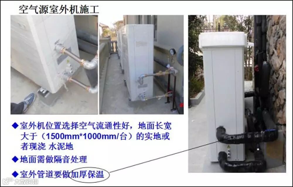 (室外保温要30mm,室内保温至少20mm,室外冷凝水管一定要做保温。走管要横平竖直,吊筋固定间距为1200~1500mm。)