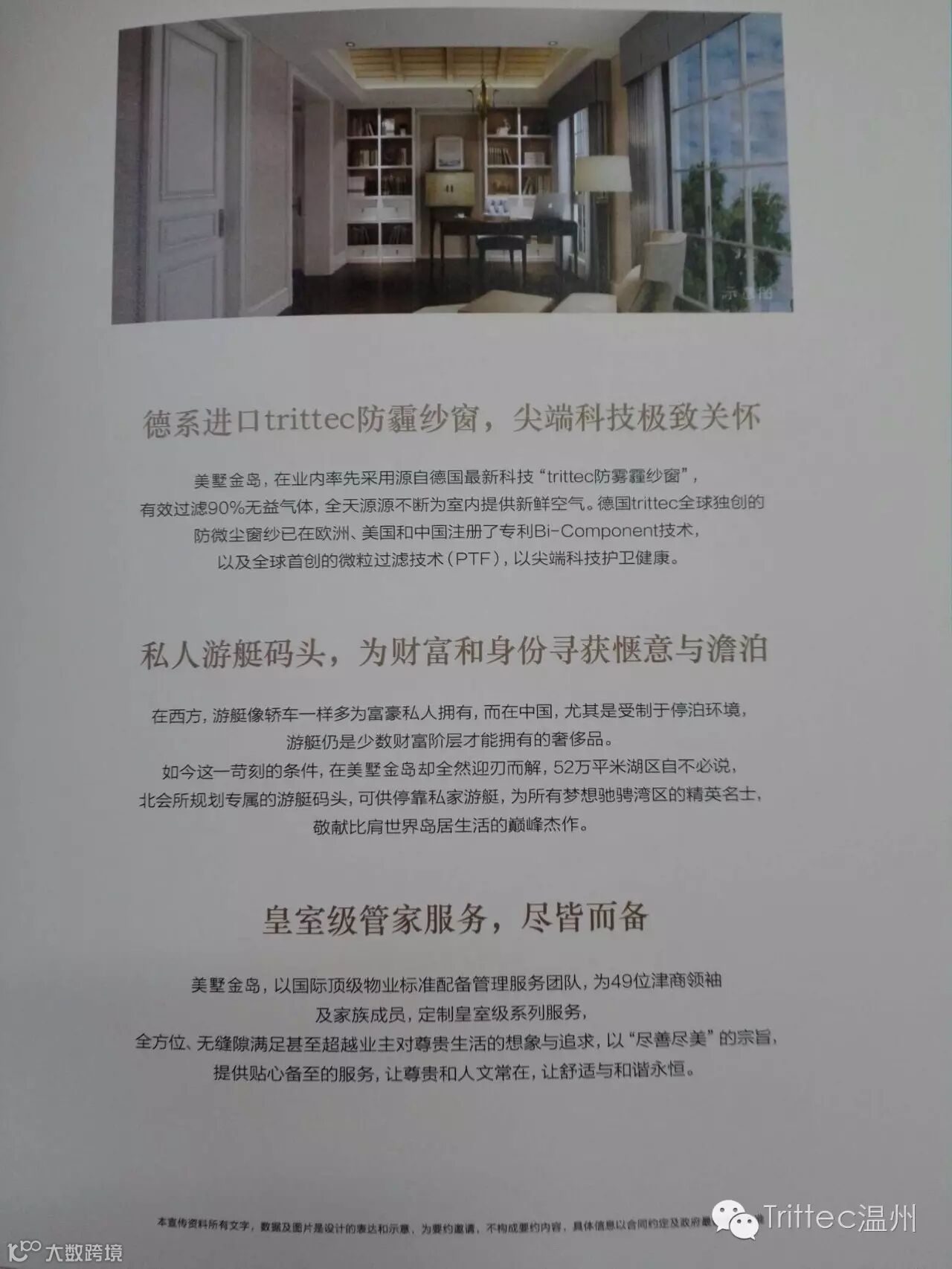 天津第一豪宅--美墅金岛,独栋49户,户均售价亿元以上,德国Trittec璀泰可防雾霾窗纱以其独特的高品质和健康价值领衔各类豪宅必备品,为至尊的美墅金岛业主送上极致的关怀!