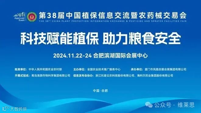 第38届中国植保“双交会”于11月22日-24日在安徽省合肥举行。本次活动以“科技赋能植保 助力粮食安全”为主题,旨在交流植保行业发展动态,展示“科技+植保”发展成就,促进产销供需对接。