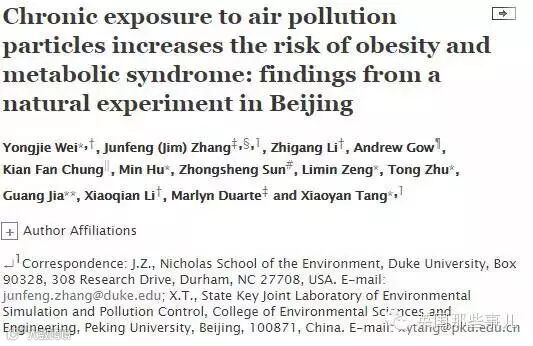 【长期暴露在空气污染颗粒物中会增加变胖和新陈代谢紊乱的风险.. -- 从北京一个自然实验中的发现】