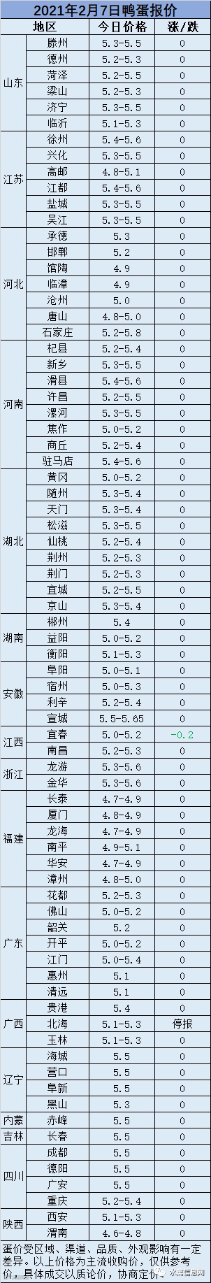 【鸭蛋价格】2021年2月7日鸭蛋报价:整体稳定,弱势调整。 益牧堂水禽信息