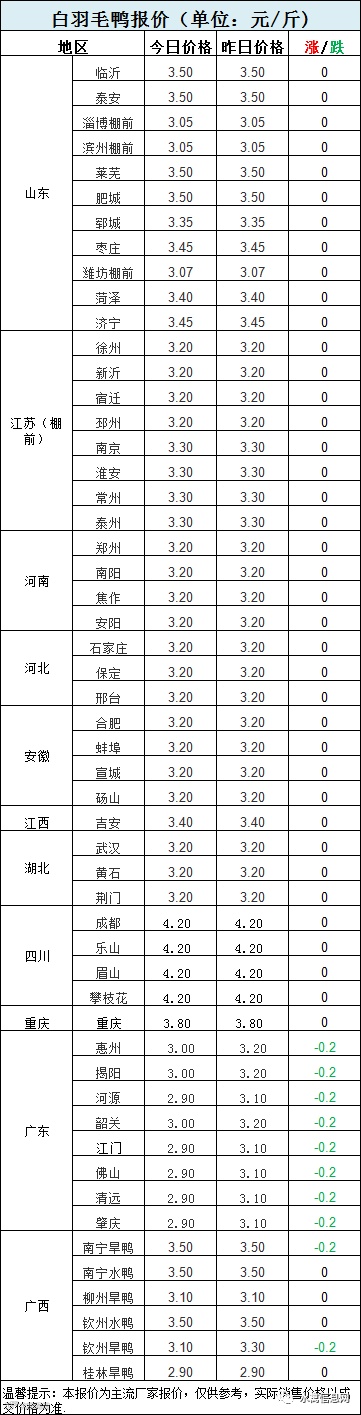 1:北方分割鸭区域,今晚报价稳定,整体持续走弱趋势。北方以合同为主,当前冷藏库存较好,临近双节,部分品类冻品走货加快。近期北方鸭价弱势中震荡调整。(经济导报:出栏量全国第一!山东肉鸭产能过剩!无序发展!)