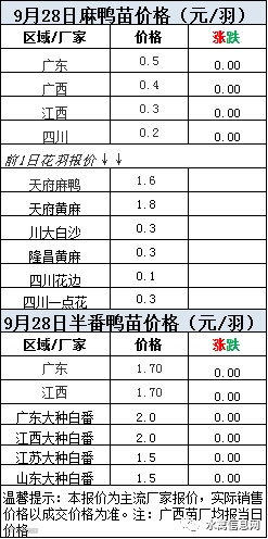 二、9月28日 麻鸭苗、半番鸭苗报价;