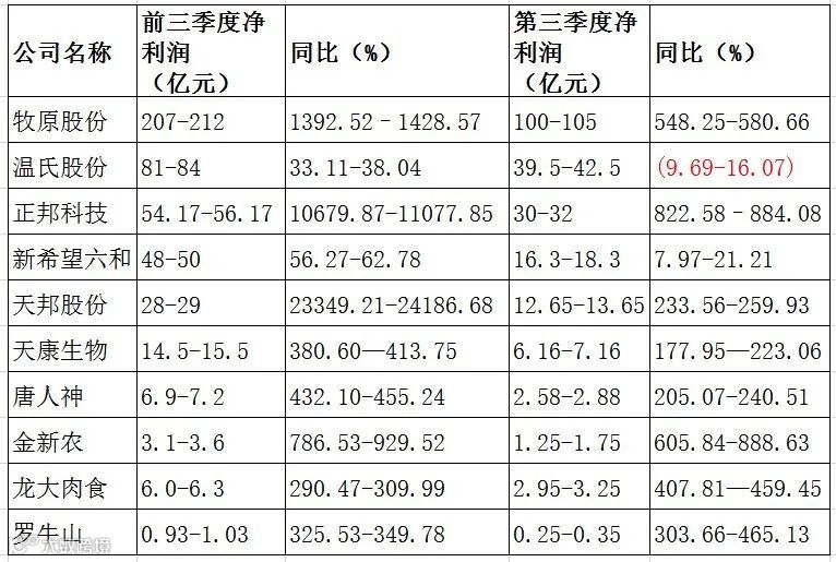 牧原、温氏、正邦、新希望、天邦等第三季度业绩公布,大部分猪企利润成倍增长,牧原一天赚一亿