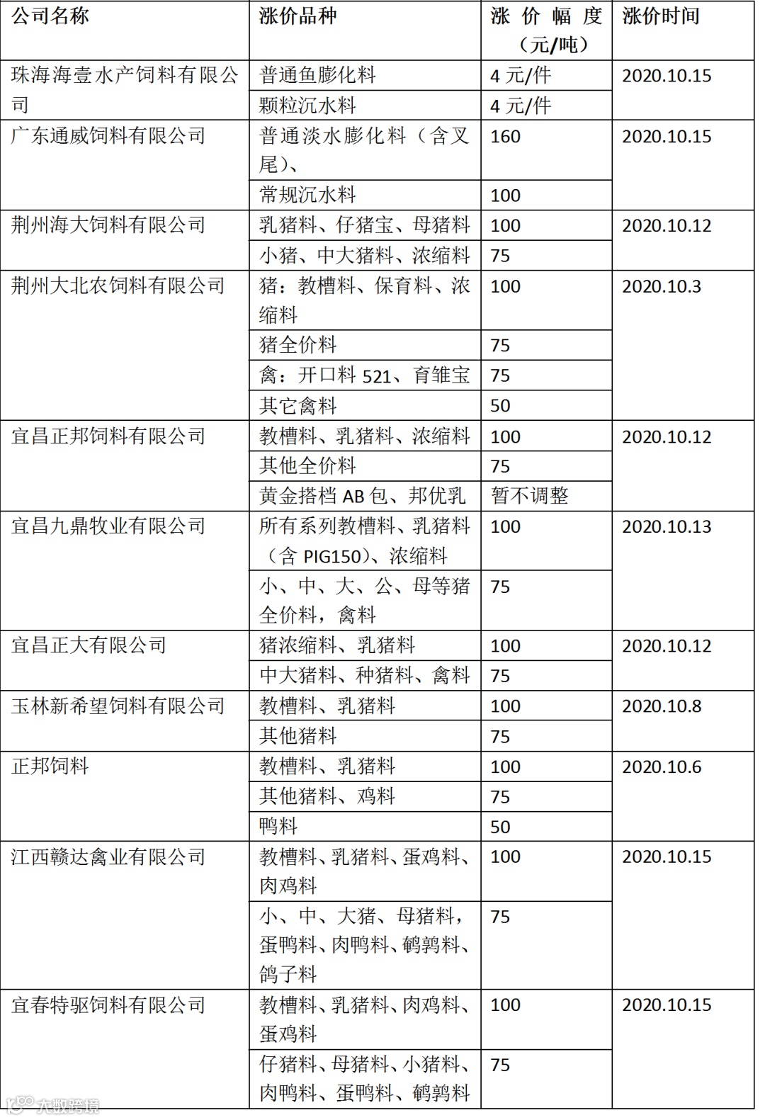 正大、新希望、海大、通威、九鼎等饲料企业掀起年内第七次饲料涨价