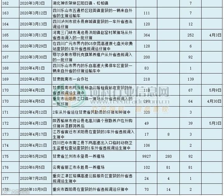 2020年第18起非洲猪瘟:重庆市酉阳县在查获的外省违规调运仔猪中排查出非洲猪瘟疫情