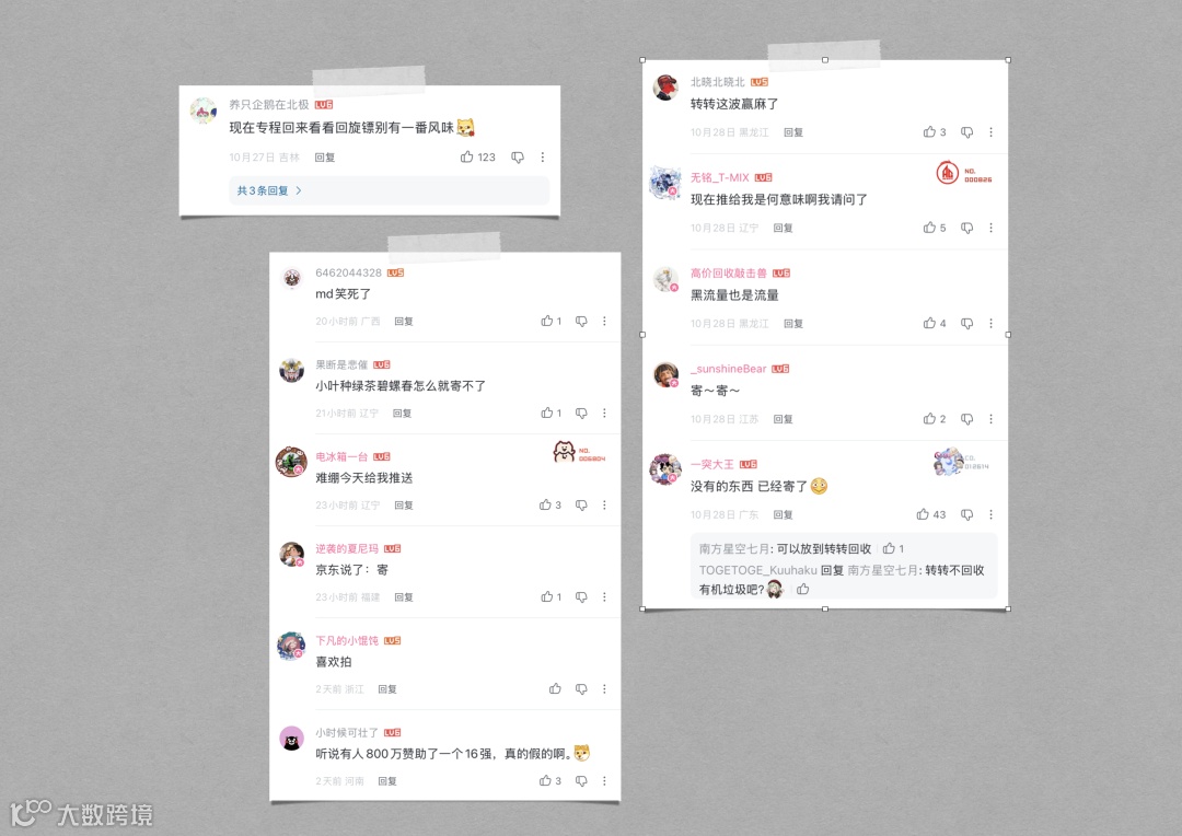 于是我们的逻辑就简单多了,你BLG不是黑子串子最多吗,不是都希望你“寄”吗,不是都等着看乐子吗?行,我们就用最具说服力,但细想简直鬼扯的办法——请一波毫不相干的圈外人为BLG加油,告诉种种BLG必“不能寄”的理由,同时也把转转“上门回收”的核心卖点包圆。