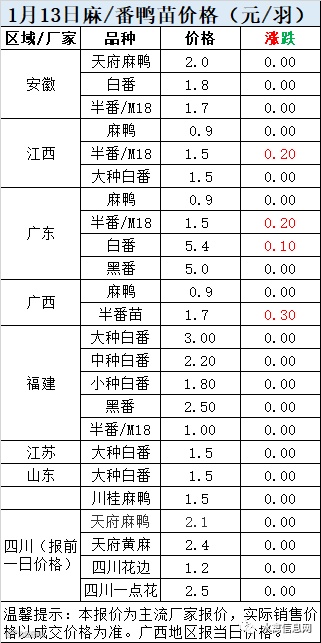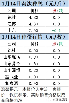 一、2021年1月13日晚至1月14日 白羽肉鸭报价