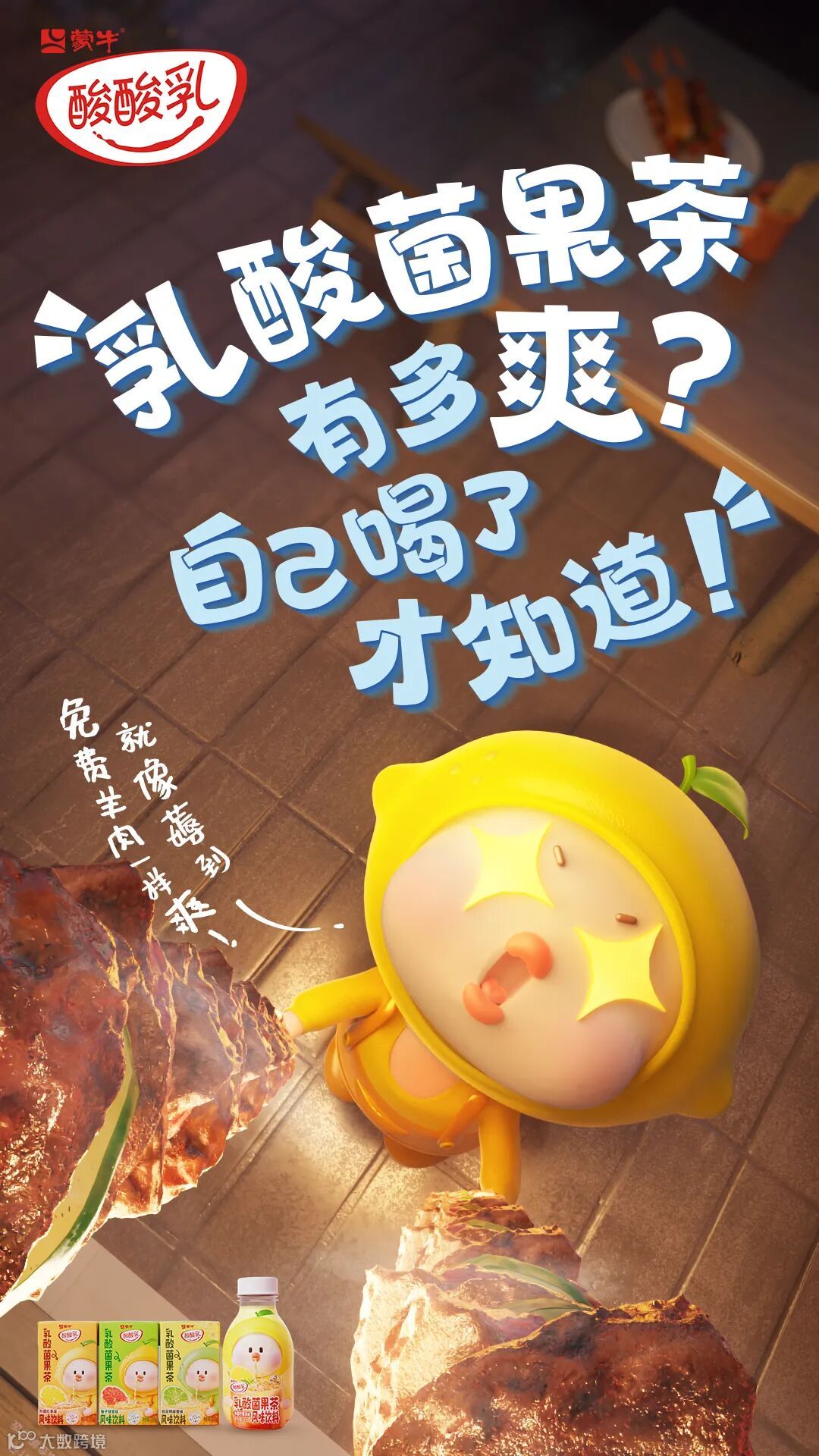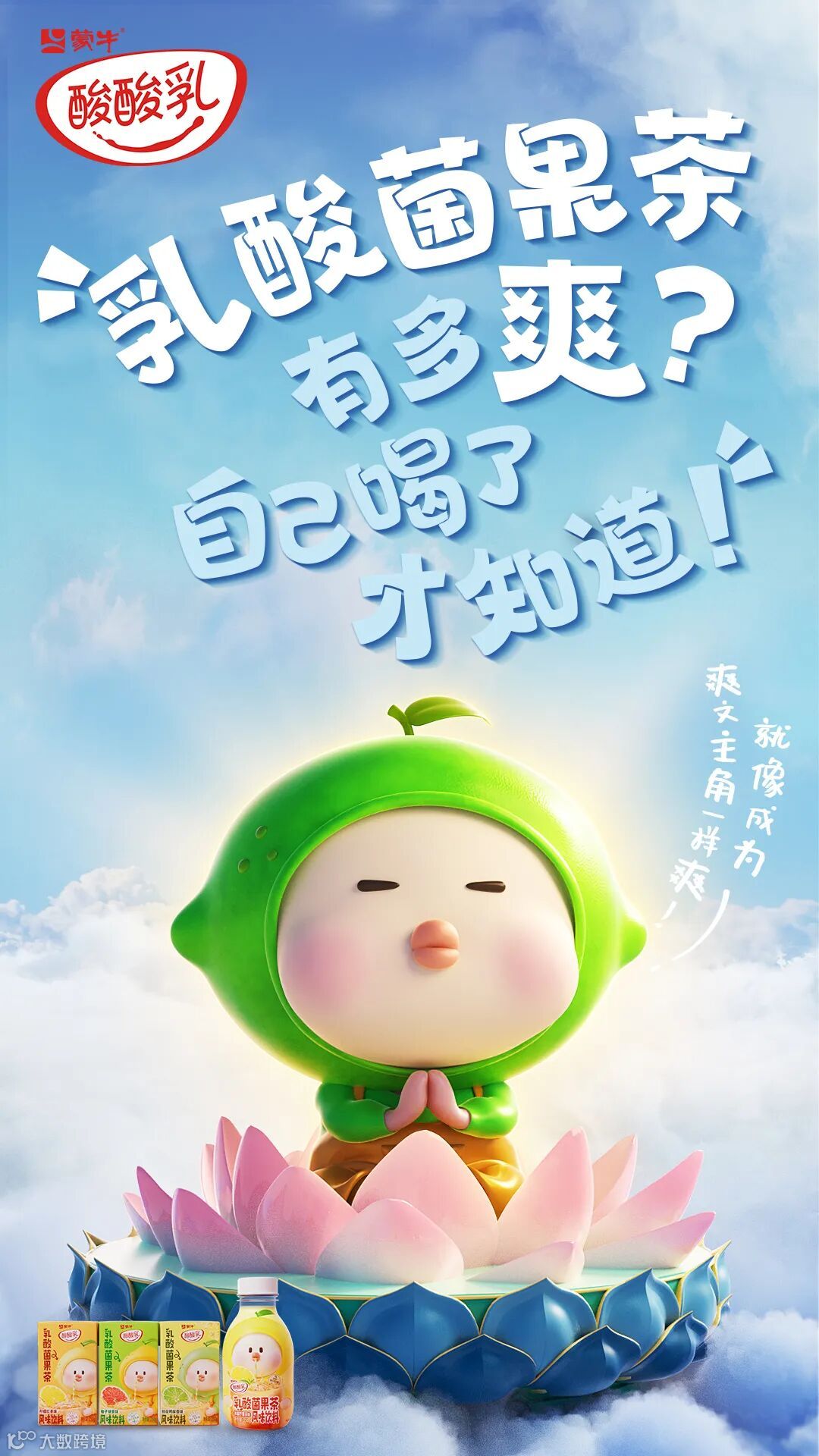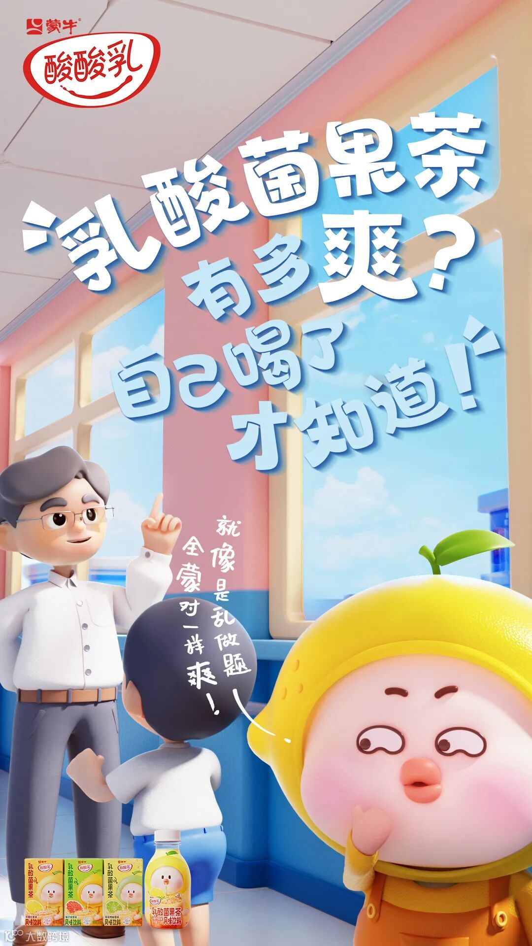 除了小嘟仔这个新ip,brief还给到一句slogan:酸甜好果茶,爽在乳酸菌。我们的idea就围绕着其中这个“爽”字展开。
