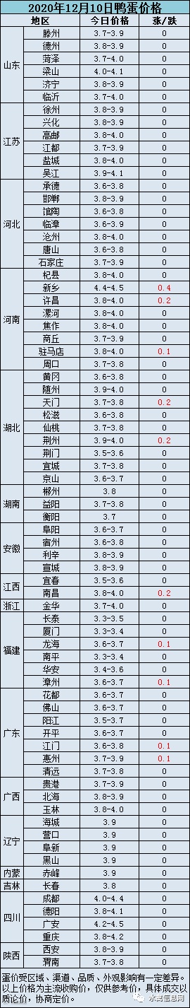 2020年12月10日淘汰蛋鸭价格参考值:活禽6.5-7.0元/斤、屠宰6.0-6.7元/斤。受肉鸭活禽价格下跌影响叠加淘鸭增多种鸭淘汰乱市,淘汰蛋鸭持续弱势震荡,走货较慢。