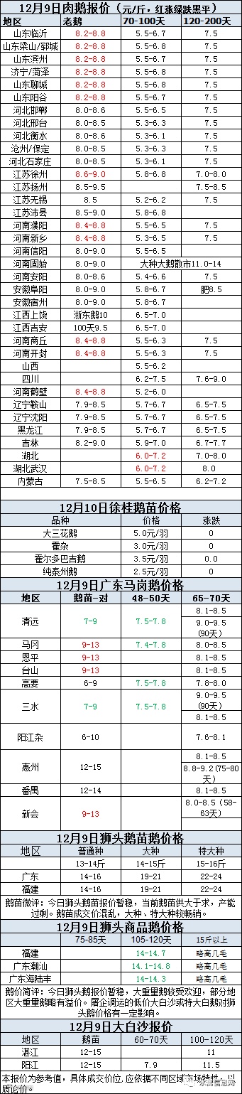 2020年12月09日鹅种蛋价格(元/枚)