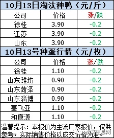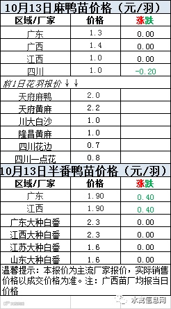 一、2020年10月13日白羽鸭苗报价;