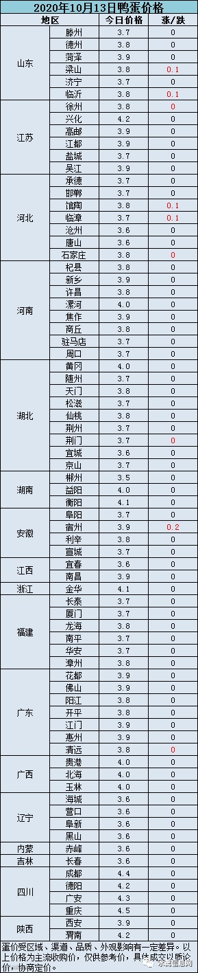 2020年10月13日淘汰蛋鸭价格参考值:6.2元/斤。受肉鸭活禽价格下跌影响叠加淘鸭增多种鸭淘汰乱市,淘汰蛋鸭持续弱势震荡。