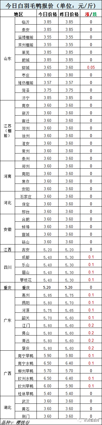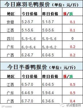 今晚毛鸭报价,北方市场稳定,局部小幅涨跌调整。四川、广东、广西报价继续上升。