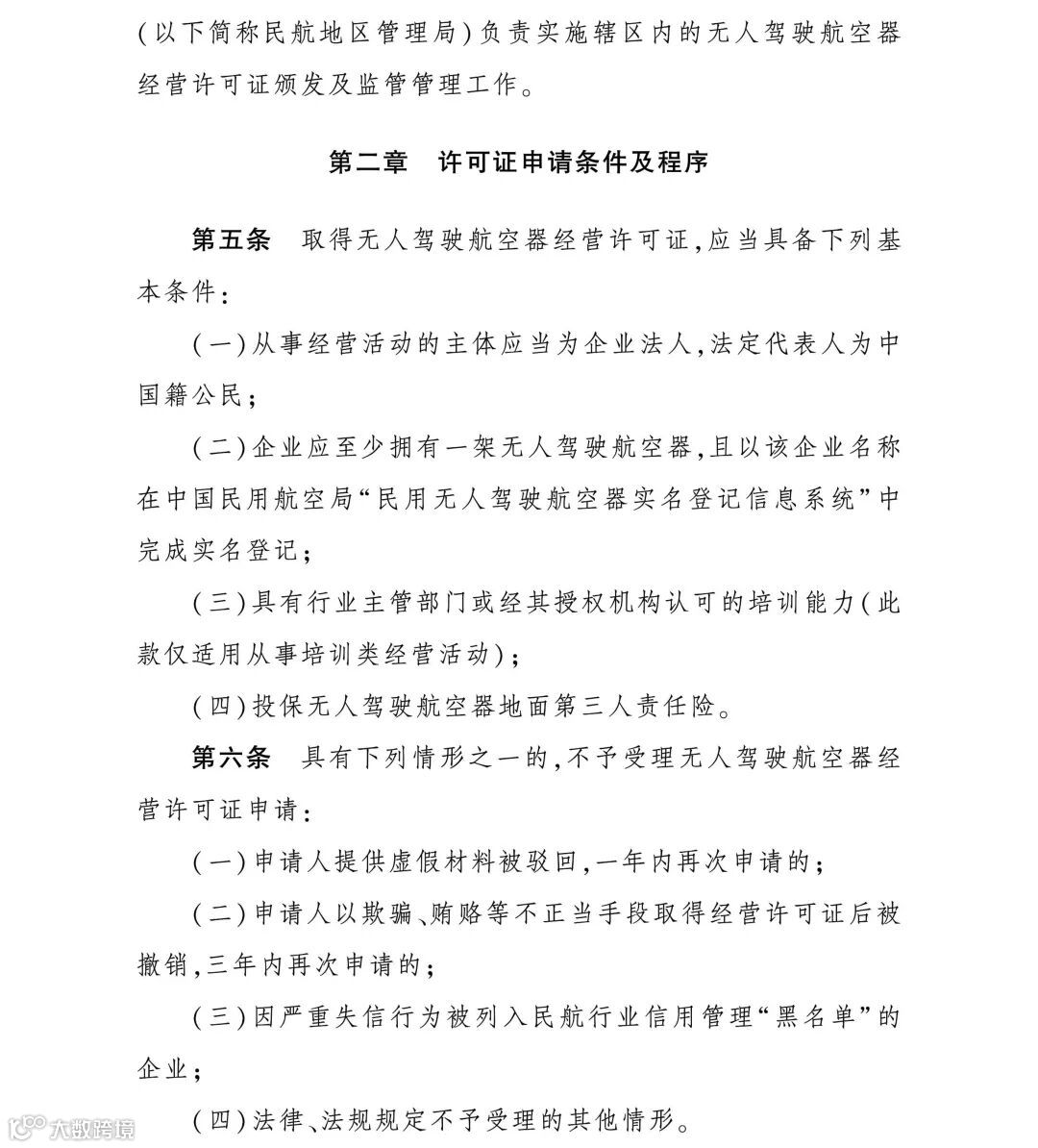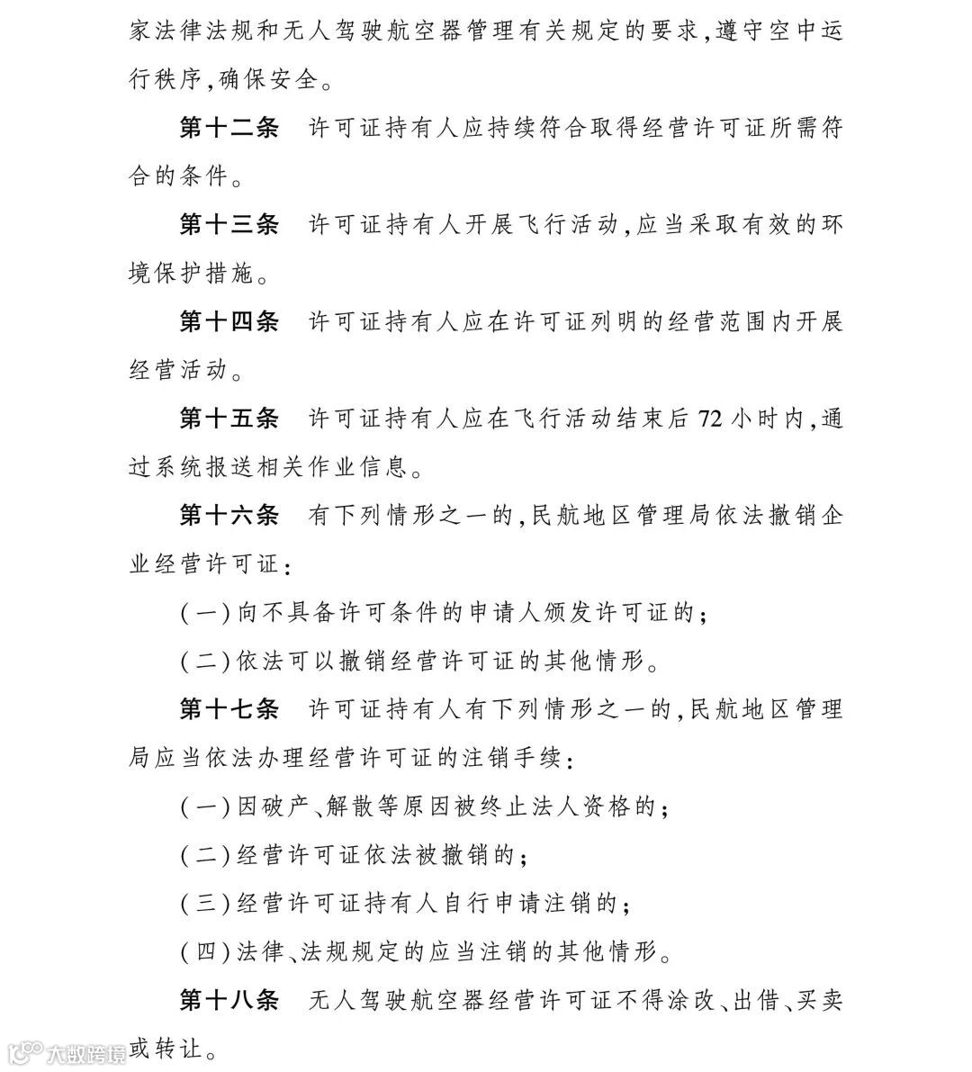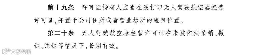 《办法》还对不予受理无人驾驶航空器经营许可证申请的情况、依法撤销企业经营许可证的情况、依法注销经营许可证的情况等进行了明确。