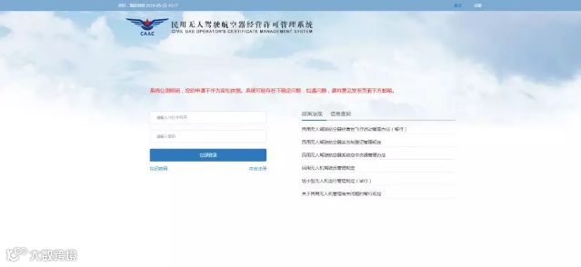 1.进入民用无人驾驶航空器经营许可证管理系统登陆页面(地址:https://uas.ga.caac.gov.cn)