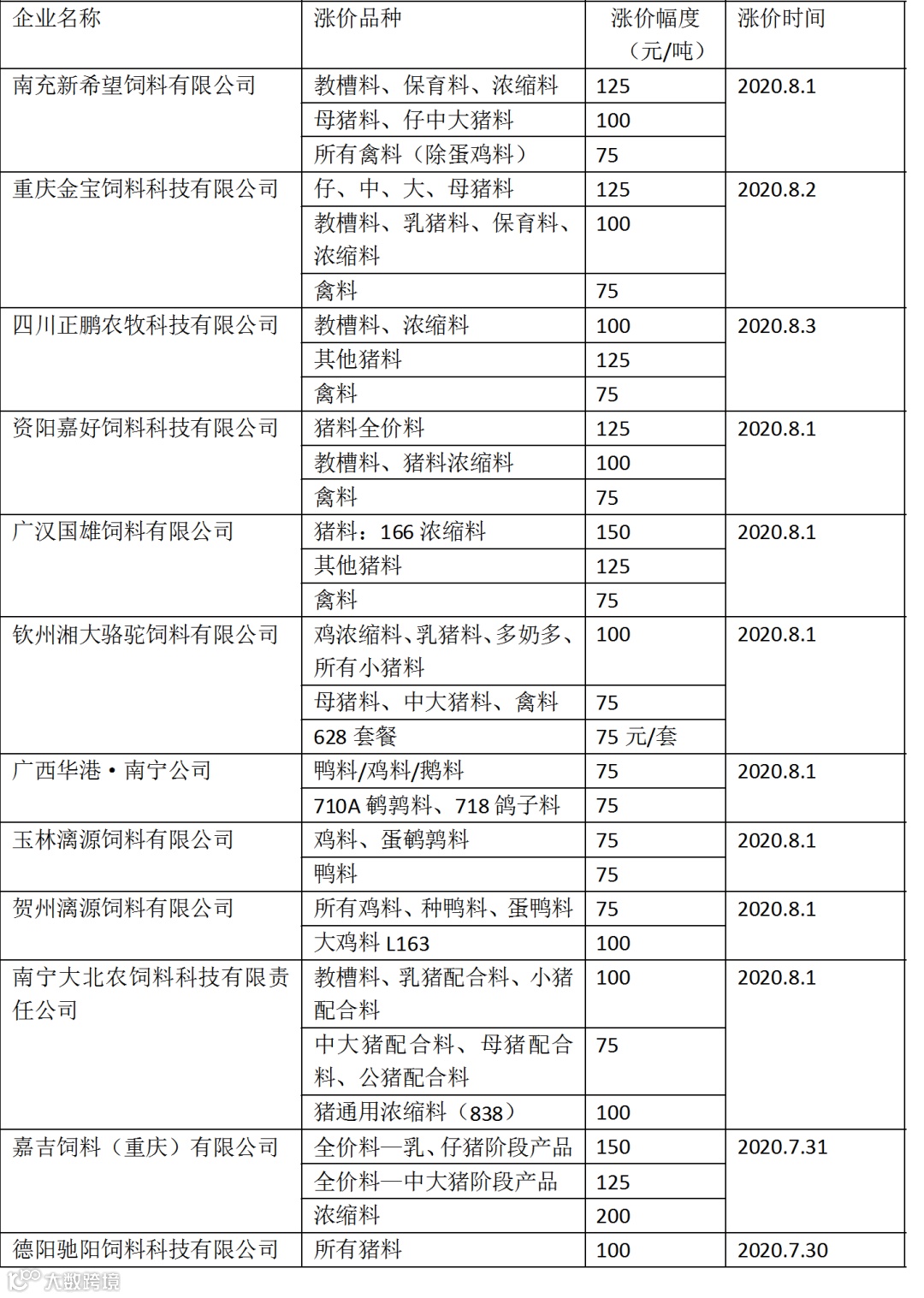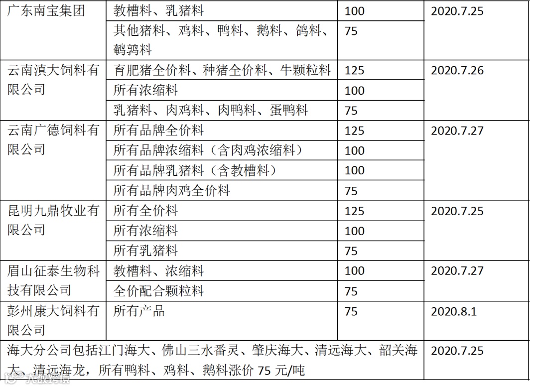8月第一波涨价:央视报道后,嘉吉、希望、漓源、大北农等饲料企业宣布涨价75-200元/吨(点击打开)
