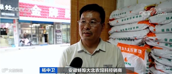 安徽蚌埠大北农饲料经销商 杨中卫:现在玉米价格都1.3元了,蛋料比是二斤饲料一斤蛋,就等于蛋的成本就增加两毛了。