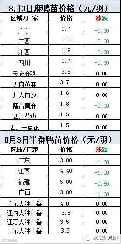 2020年8月3日鸭苗报价