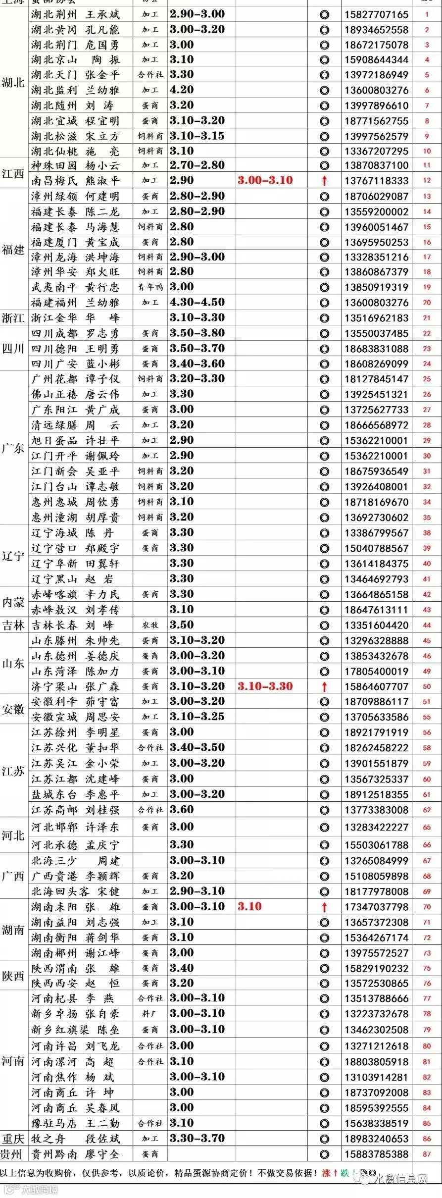 | 蛋价受蛋形、蛋重、整洁度影响,以上价格为参考,具体成交以质论价,协商定价。 |