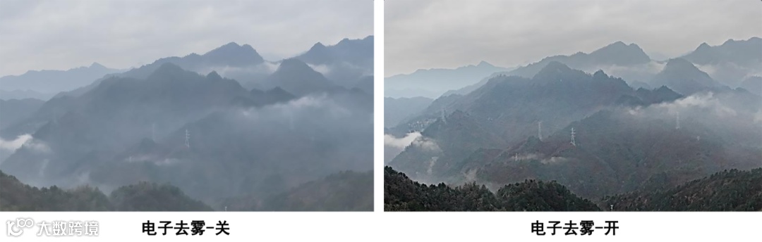 针对雾霾、大气湿度过高等环境,开启电子去雾可提高变焦相机的成像清晰度