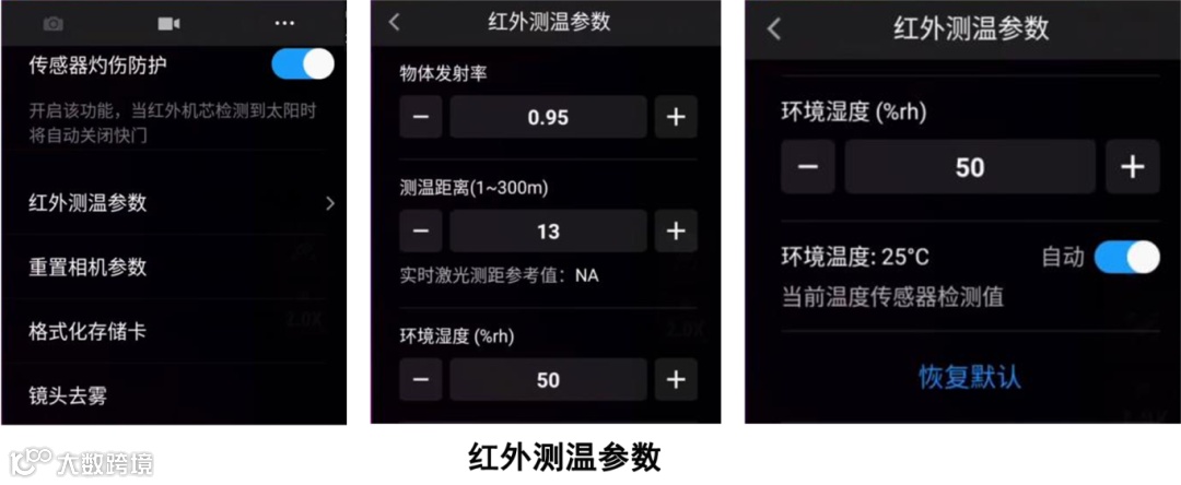 支持Pilot APP端测温参数调节(物体发射率、距离、环境温度、湿度等)