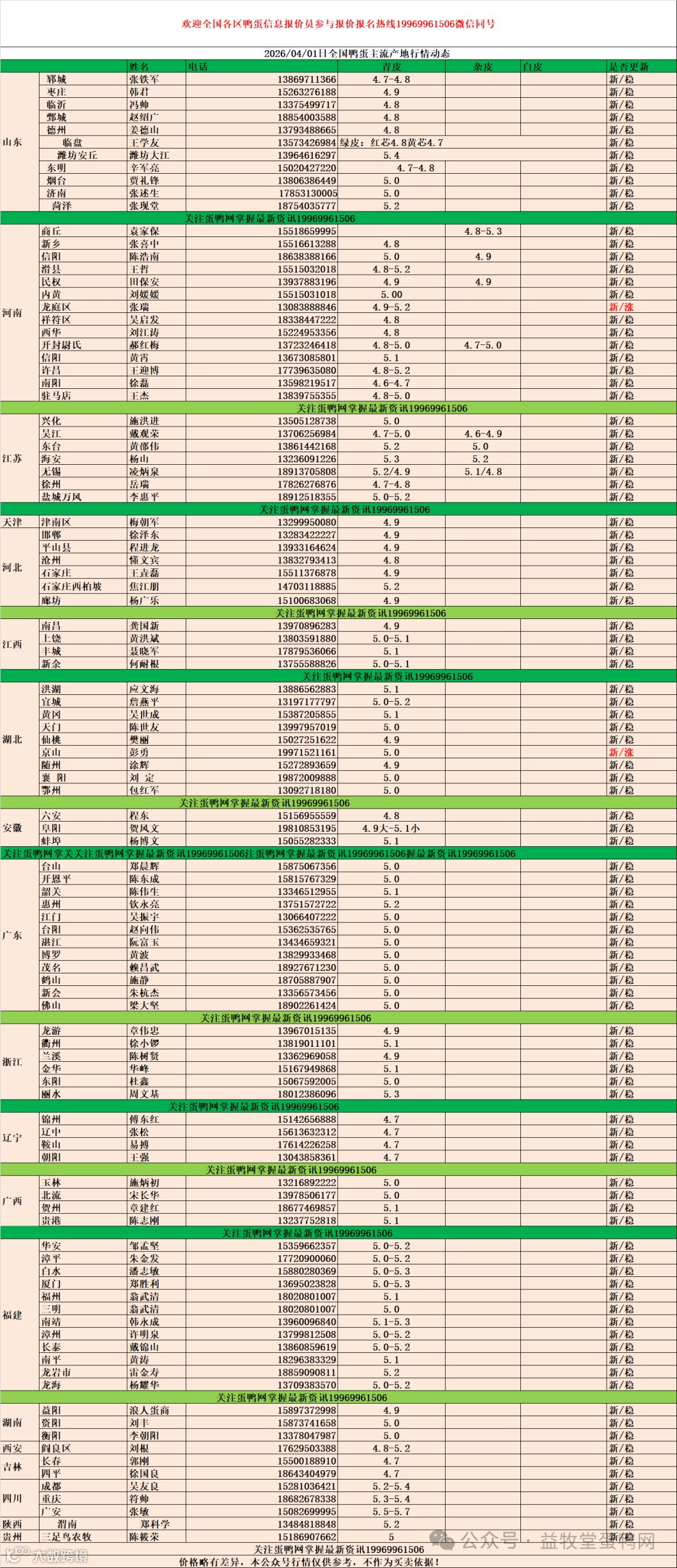2026年4月1日商品鸭蛋报价