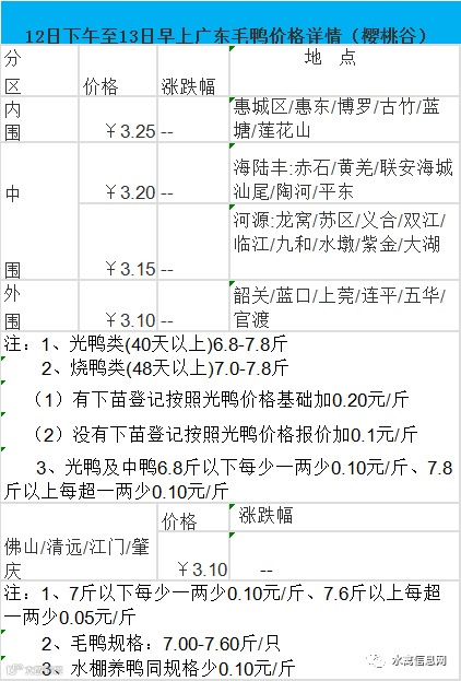 5月12日下午至13日上午毛鸭价格