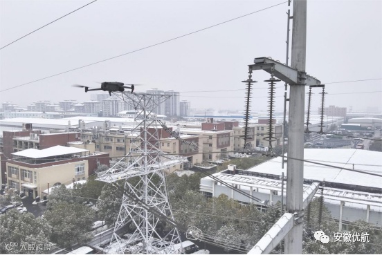 受强冷空气影响,近日全国多地迎来强降雪,部分地区气温跌破12月历史极值,据了解,未来还将出现持续偏寒、降雪天气。面对供电线路及设备可能出现的安全隐患,安徽优航技术团队坚守阵地,携无人机直面严寒与风雪,为今冬电网的安全运行增添一份助力。