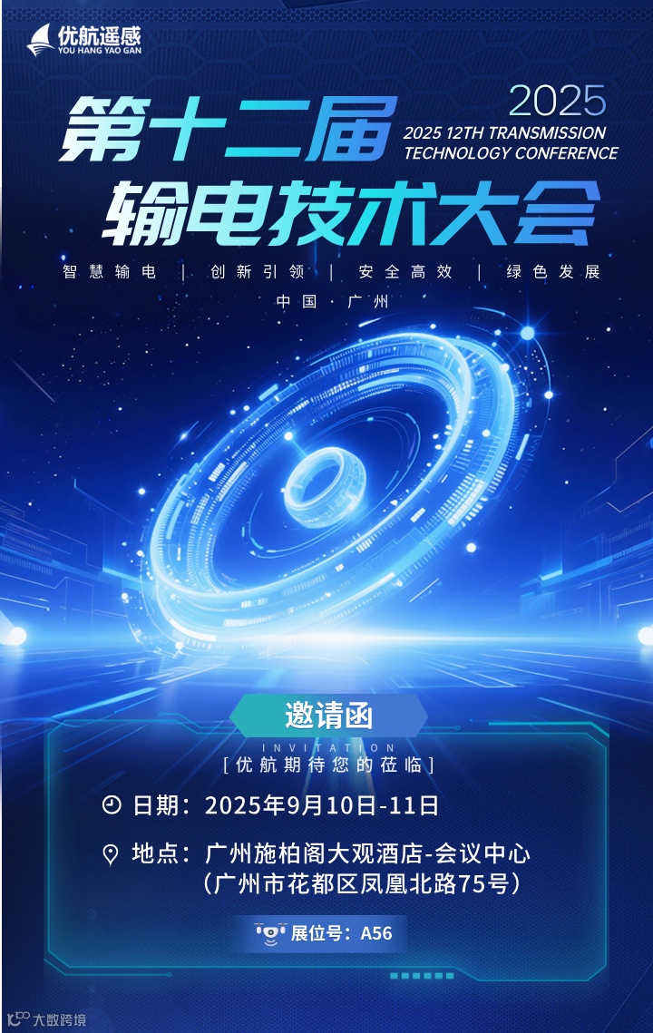 2025年9月10-11日,2025年(第十二届)输电技术大会将于广州召开。安徽优航遥感信息技术有限公司届时将携“一控多机移动机巢”、“一控多机便携式飞控终端”等重点产品参展,带来全新输电低空数智解决方案。