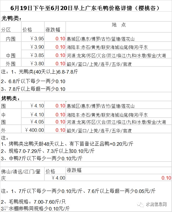 | 2020年6月19日两广毛鸭活禽报价 | ||||