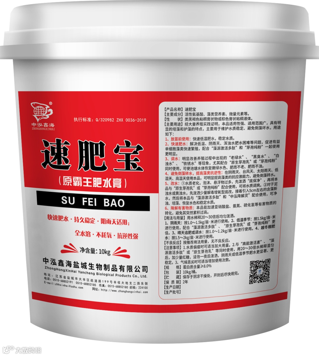 2、快速肥水:解决低温、阴雨天、浑浊水肥水困难等问题,促进有益单细胞藻类快速繁殖,配合“藻源激活多肽”和“芽孢纯粉”一起使用更明显。