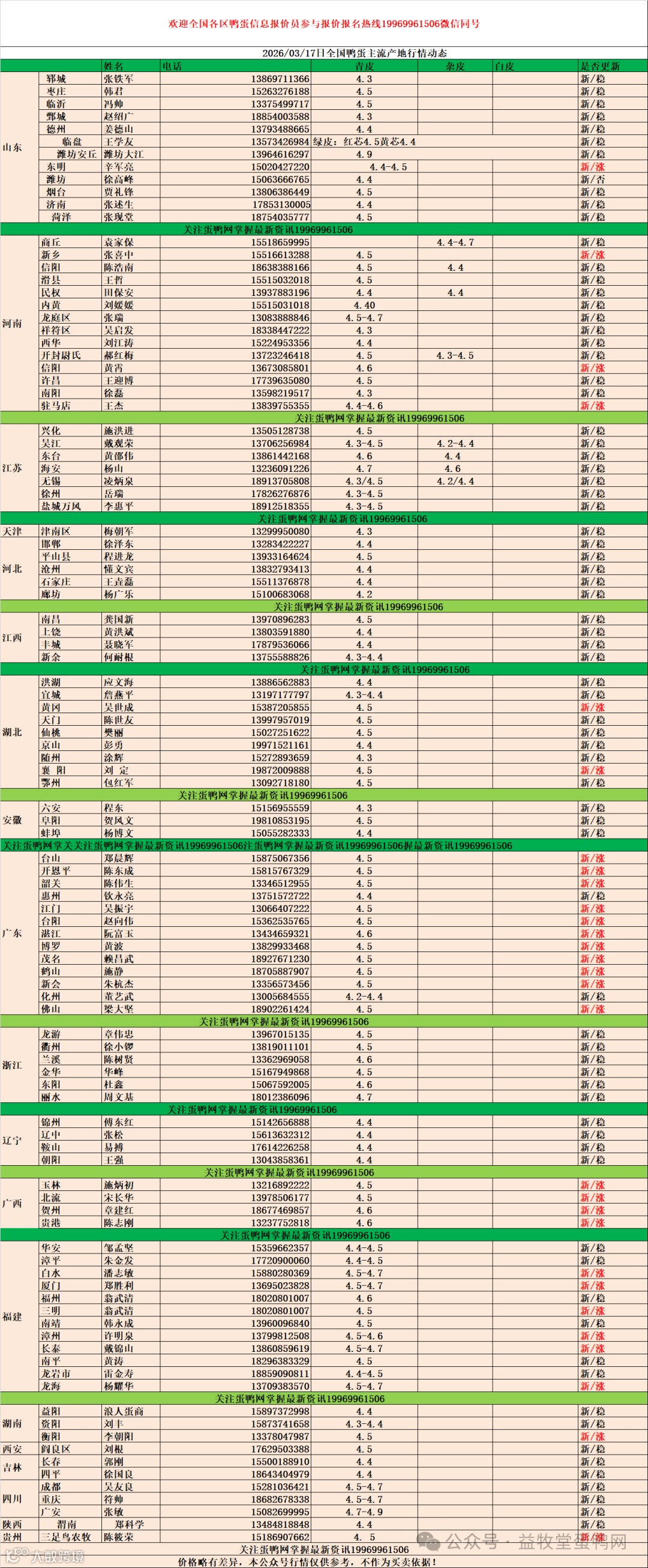 2026年3月17日商品鸭蛋报价