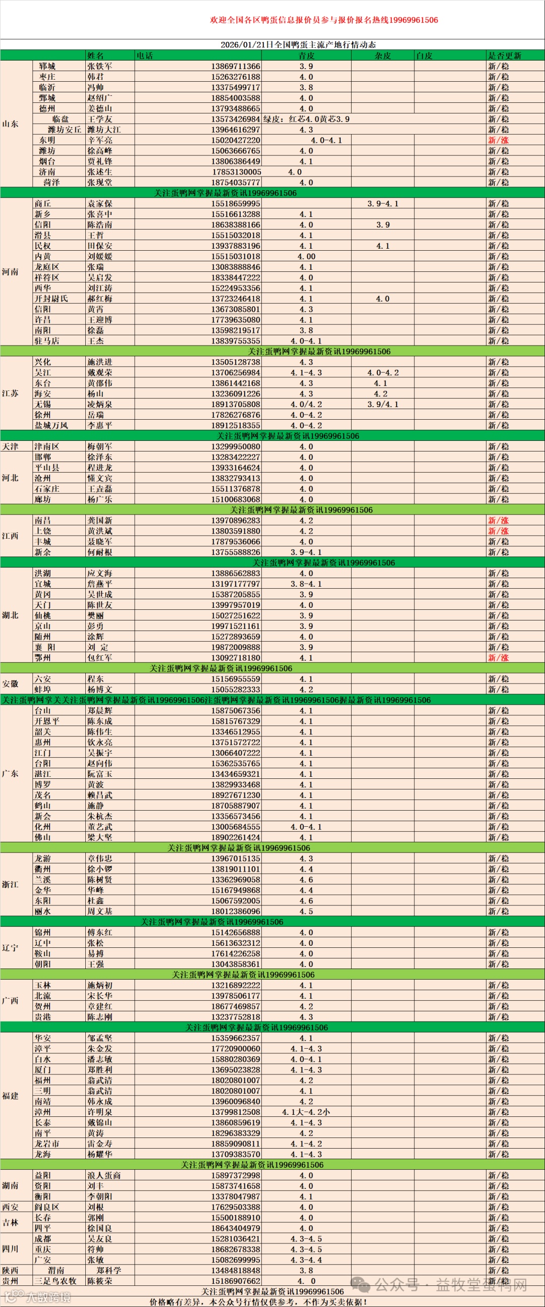 2026年1月21日商品鸭蛋报价 益牧堂水禽信息