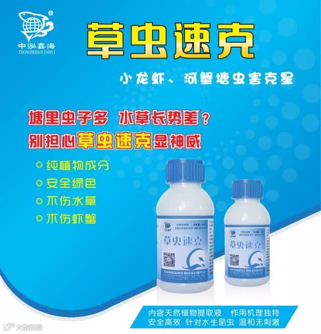 湖北汉川钱老板,经营蟹塘29亩。今年3月末时,水草上线虫危害严重,使用草虫速克,按1瓶2亩,第二天观察,八至九成的线虫都被杀灭。为巩固效果,3、4天后又追加使用一次,确保不反弹。4月中旬,汉川吴老板,15亩河蟹塘尚未放苗,空塘按一瓶2亩,用于除摇蚊幼虫,用后效果显著。
