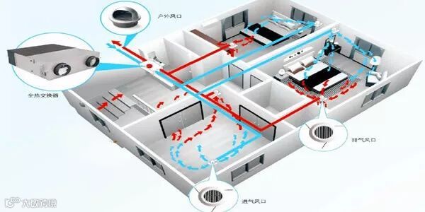 新风系统:引入室外新鲜空气,将室内甲醛、二氧化碳等混浊空气排出。