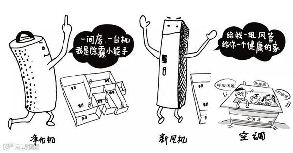 空气净化器:不引入新风,负责净化室内空气中的微尘及细菌,对甲醛、一氧化碳、二氧化碳等气体的污染,是没有办法解决的。