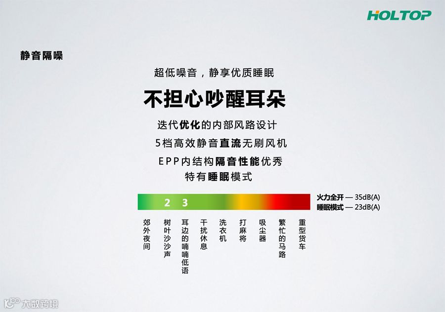 第四点,静音。现在有优化结构,属于新风高端机的标配。我们跟广州金地在一起做了一个项目,这个项目因为高铁在小区里面穿过,所以噪音非常大,但是安装了环都设备以后,室内噪音降到35以下,是很棒的状态了。