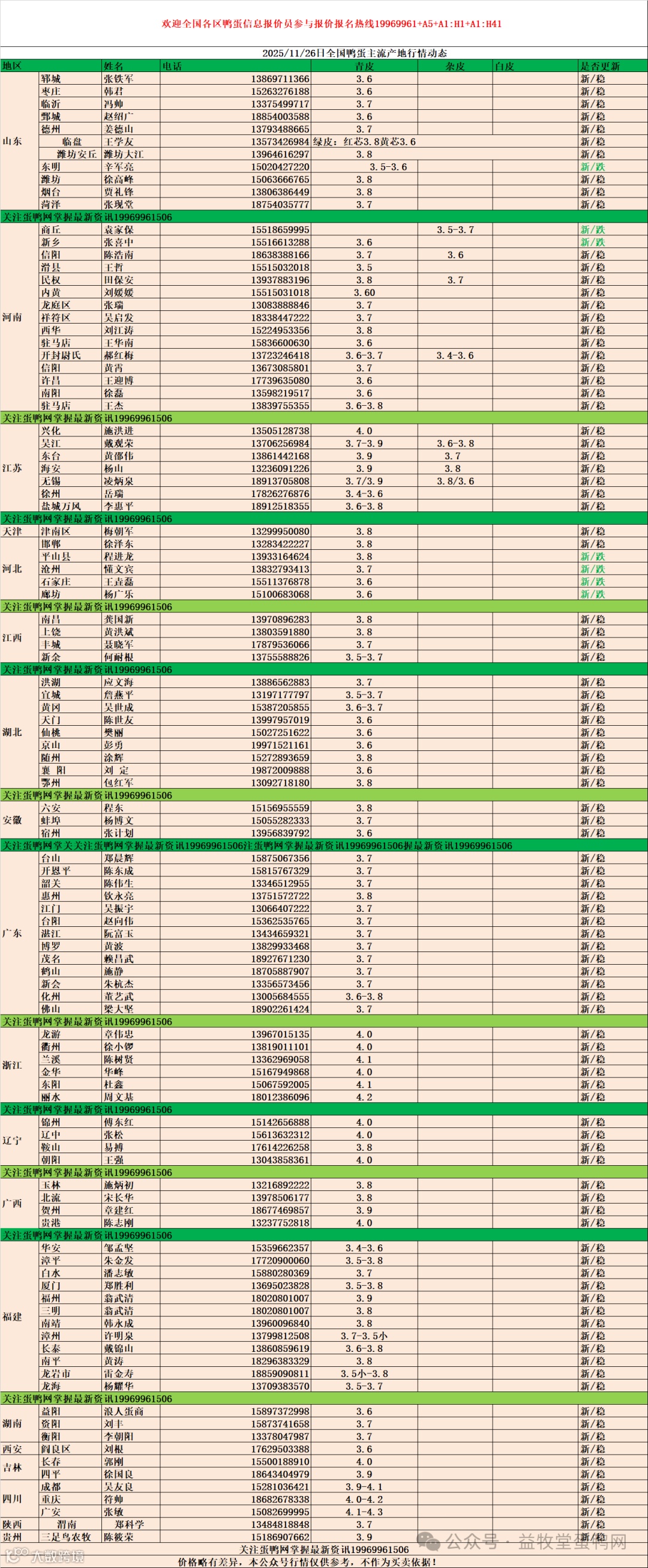 (由于地区、品质、市场需求差异,本报价仅供参考,实际成交请以当地实际价格为准)。