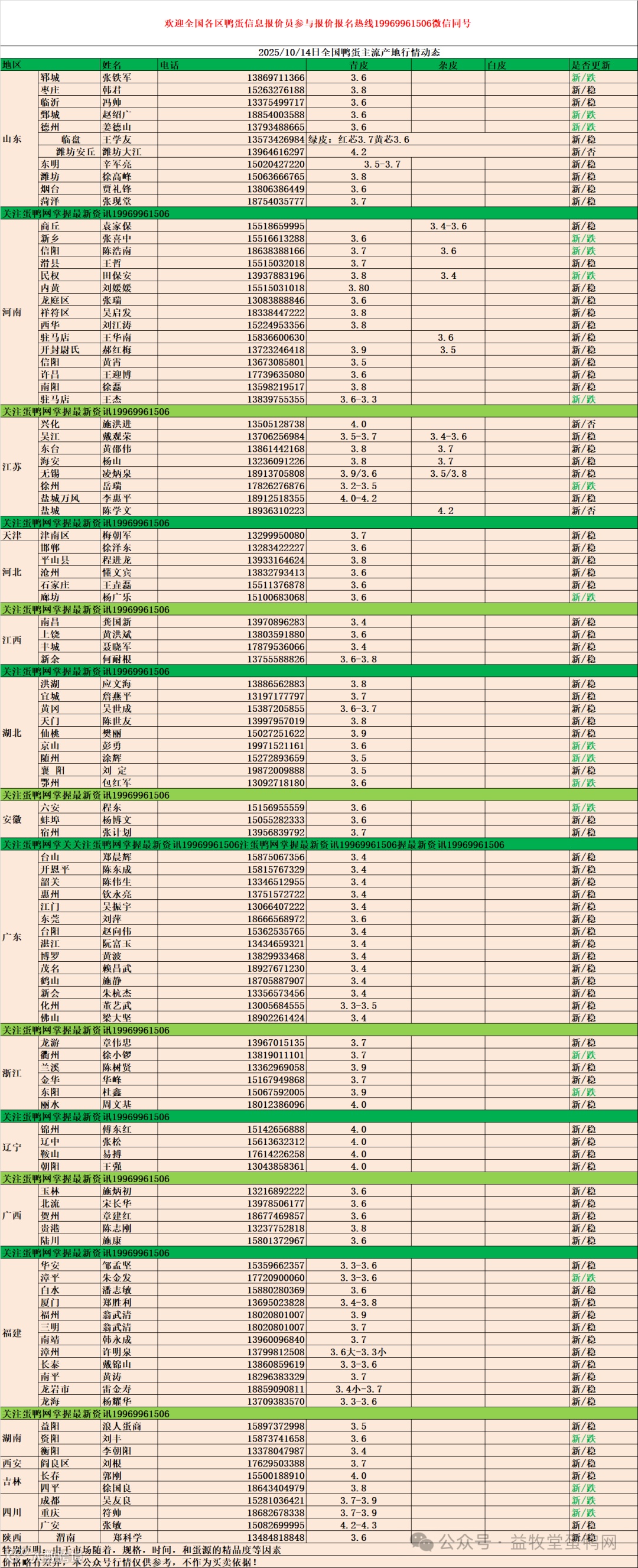 10月14日:初产至10个头2.7元,10个头至9个头3.2元,9个头至8个头3.4元。8个头至7.5个头3.7元,7.5个至大蛋4.0元。