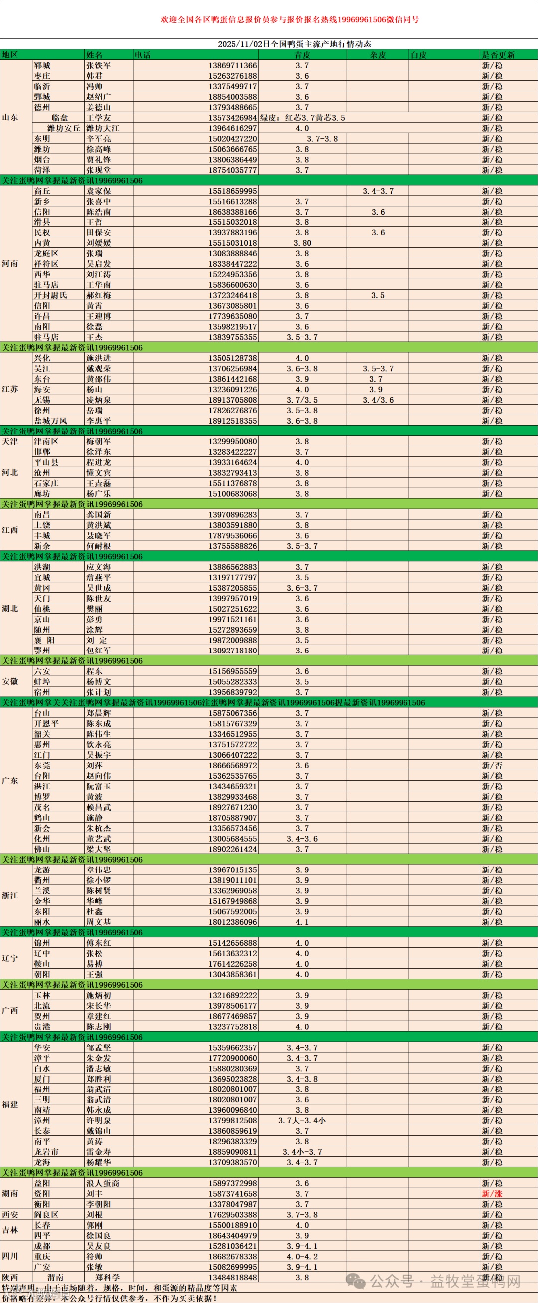 11月02日:初产至10个头2.9元,10个头至9个头3.2元,9个头至8个头3.3元。8个头至7.5个头3.7元,7.5个至大蛋4.0元。