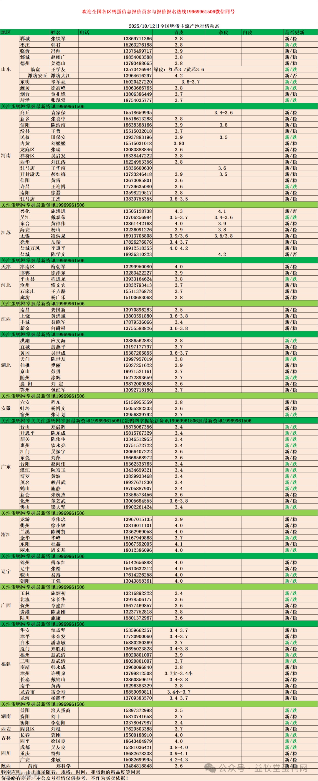 10月12日:初产至10个头2.7元,10个头至9个头3.2元,9个头至8个头3.4元。8个头至7.5个头3.7元,7.5个至大蛋4.0元。