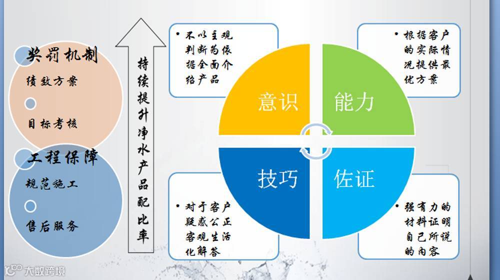 那么,厂方具体要做什么呢?一个是销售,另外一个是工程,其中在销售当中,有7个维护、22个方面的事情要去做,因为合作伙伴需要跟厂方学习“本事”,厂方是否有过硬的“本事”关乎整个合作的结果。所以厂方要重视净水平台的搭建和技术人才、专业基础、销售方法、数据对接等工作。现在很多优秀企业在做大的店面,其实就是帮助合作伙伴减少经营难度,增加保准化,以及提升员工对平台的归属感。