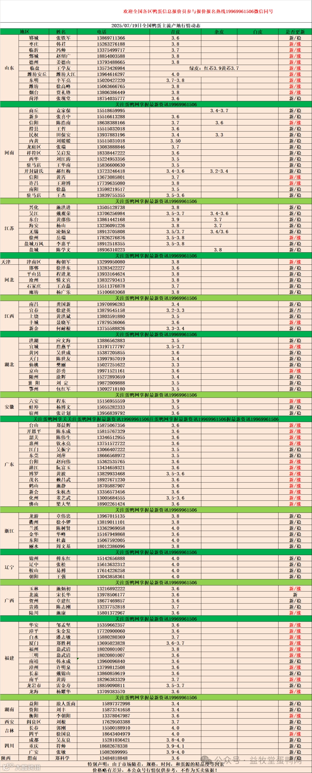 7月19日:初产至10个头2.5元,10个头至8个头3.2元,8个头至7.5个头3.6元,7.5个头至大蛋4元
